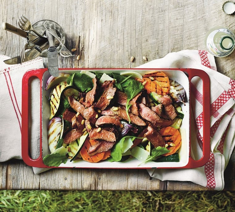MLA Grilled Aussie beef sirloin steak, zucchini, sweet potato and arugula salad